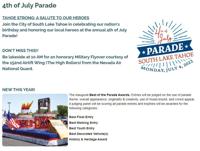 A parade in South Lake Tahoe will begin at 10 a.m. Monday, July 4 with an honorary military flyover, right above Lakeview Commons, courtesy of the Nevada National Guard, 152nd Airlift Wing “High Rollers”.