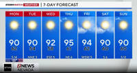 Temperatures stay in the 90s each afternoon through the weekend with sunny skies.
