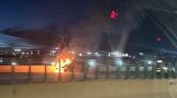 A car caught fire following a two-car crash on I-580 south of Moana Lane on Thursday night.