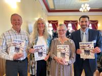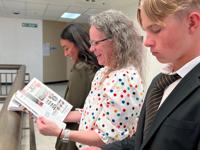 Helping the students with the new project are Cody Downing and Angila Golik, teachers and FBLA co-advisors at Carson High; Jenny Treese, ad director for Carson Now; and Jon Rogers, a retired entrepreneur.