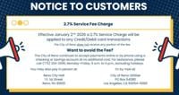 The 2.7% fee is considered a merchant fee that's collected by a Wells Fargo bank. For some time, the City was covering those fees using money from the City's general fund, building enterprise fund and the sewer fund.