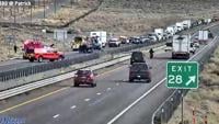 A crash involving a sedan and a commercial semi-truck shut down I-80 westbound near Patrick Thursday morning, Nevada Highway Patrol troopers said.