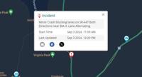 Accident in dead ox sr 447 - both lands closed. No estimated time of opening. Avoid dirt road
