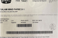 2.6-oz. plastic pouches containing “CREMINELLI FINE MEATS salami minis UNCURED ITALIAN SALAMI PARMESAN” with “BEST BY” dates from 06/18/22 through 12/09/22.