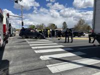 Sparks Police said they were called at 11:18 a.m. Tuesday to a rollover crash involving four cars at Sparks Boulevard and Prater Way.