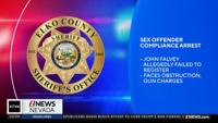 A man was arrested in Elko County on Thursday on multiple charges, including failure to register as a sex offender.