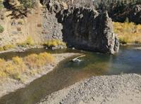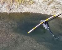 An investigation revealed that the fisherman initially landed the helicopter on the bank of East Carson River, but when he started to take off and leave, a portion of the riverbank gave way and the helicopter tumbled into the river.