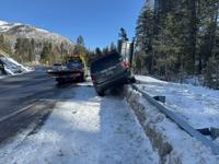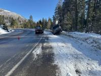 A car that took an unexpected turn onto a snow covered shoulder is drawing attention to winter driving conditions in the Lake Tahoe Basin, where changing temperatures are keeping roads slick.
