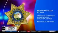 Deputies say it appears the unidentified man was walking on the tracks when he was hit from behind, just before 5 p.m. in the Tahoe Reno Industrial Center.