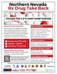 Residents outside of Washoe County who’d like to dispose of their prescription drugs can visit www.dea.gov to find a collection site near them