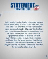 According to the The ECHL's website, it made its final offer on Christmas Day.