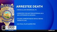 75-year-old Dayton resident Dean Allan Hendricks was found in the back of a squad car unresponsive during a stop on the way to the Lyon County Jail in Yerington, according to a release from the Lyon County Sheriff's Office.