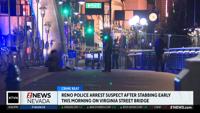 Reno Police has arrested a man in connection with a stabbing near Virginia Street bridge in downtown Reno early Monday morning.