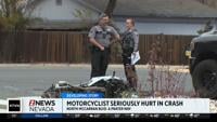 A motorcyclist has been hospitalized with serious injuries after a three-vehicle crash in Sparks on Thursday.