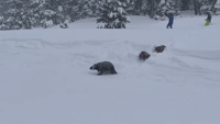 Three bears were seen running down a ski slope at Northstar California Resort, weaving through skiers and sliding under the ski lift before disappearing into the trees.