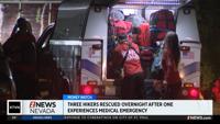 Three people were rescued overnight after one of them experienced a medical emergency during a hike that started in southwest Reno.