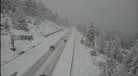 As the snowstorm hits I-80 along Donner Summit, Semi-trucks are being turned away, and few cars are being let through the pass intermittently.
