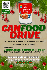 “For years, Stateline and South Lake Tahoe have stepped up for its neighbors,” said Dreu Murin, organizer for the canned food drive. “We are asking everyone—every household, every business, every visitor—to help us fill the shelves again.”