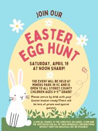 The hunt is being held at Miners Park in Virginia City, and is free and open to all kids up to fifth grade who live in Storey County.
