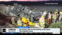 Nevada Highway Patrol says the two people were transported to a nearby hospital with non-life-threatening injuries after the crash, just after 1:45 a.m. Friday.