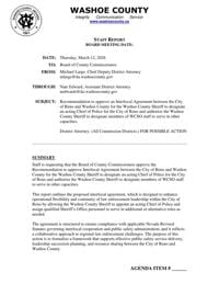 Washoe County leaders have approved an interlocal agreement with the City of Reno regarding Undersheriff Corey Solferino stepping in as acting police chief.