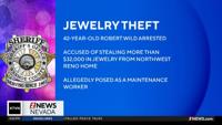 The Washoe County Sheriff’s Office recovered roughly $32,300 in stolen jewelry and arrested a suspect following a theft reported at a northwest Reno residence.