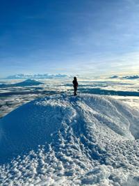 Becca traveled to Ecuador last week for a recreational trip to climb some of the highest mountains in South America. One of the mountains she climbed, Cotopaxi, is an active stratovolcano known for its symmetrical cone shape and frequent eruptions. It has an elevation of 19,347 feet, making it the second-tallest mountain in Ecuador.