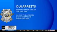 The Washoe County Sheriff’s Office made 203 DUI arrests from January through June, according to a Facebook post shared by the department.