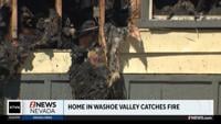 Four people and two dogs are displaced after a house fire in Washoe Valley on Monday.