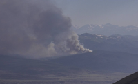 The Forest Service says the fire is "in very hazardous terrain, located in a lava crater/dome, so crews are going very slow and relying heavily on aviation support to cool off the edge."