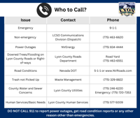 The Lyon County emergency operations center phone number (775) 461-3757 will remain active until Friday, January 20, 2023 close of business (5:00pm).