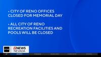 All City of Reno recreation facilities and pools will also be closed on May 27th. Visit Reno.gov/ParksandRec for more information.Â