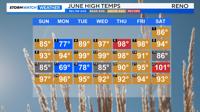 Reno usually sees several triple digit days each year, with the first one usually occurring in the middle of July. We already reached 100° at the Reno Airport this year in June, with multiple more chances to reach the century mark this week.