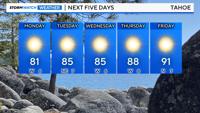 Lake Tahoe even has a shot at reaching the upper 80’s and low 90’s next weekend. The forecasted high for the 4th is 88° on Thursday at South Lake. There is a 20% chance of getting over 95° next weekend in Truckee. That will be the hottest day of the week. A heat wave is at least two consecutive days of unusually hot weather.