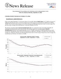 Applications for unemployment benefits for the week ending Sept. 17 rose by 5,000 to 213,000, the Labor Department reported Thursday. Last week's number was revised down by 5,000 to 208,000, the lowest figure since May.