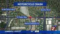 On Thursday, October 6, around 7:54 PM, Sparks Police, Sparks Fire and REMSA responded to the intersection of East Prater Way and Marina Gateway Drive for a report of a motorcycle versus vehicle traffic collision.