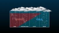 Sleet forms when you have a snowflake that partially melts, then refreezes. The melting layer is smaller than it is with freezing rain, with a larger cold layer near the surface. Much of the midsouth saw both sleet and freezing rain over the weekend. The sleet was a saving grace for some states, including Georgia and North Carolina. Parts of Tennessee and Mississippi saw reports of around a quarter of an inch of freezing rain, with localized spots seeing around a half inch.