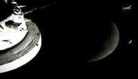 “Such a majestic view out here,” Wiseman radioed once he regained his composure and started picture-taking. The astronauts called down that they managed to capture the moon and Earth in the same shot, and they provided a running commentary to scientists back in Houston on what they were seeing.
