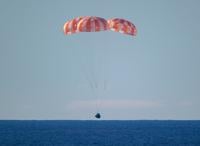Watching the drama unfold nearly 2,000 miles (3,200 kilometers) away, the astronauts’ families huddled in Mission Control's viewing room, cheering when the capsule emerged from its six-minute blackout and again at splashdown.