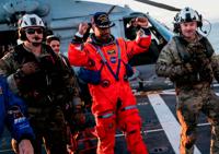 After a quick reunion with their spouses and children, commander Reid Wiseman, pilot Victor Glover, Christina Koch and Canada's Jeremy Hansen took the hangar stage, surrounded by space center workers and other invited guests. They were introduced by NASA Administrator Jared Isaacman, among the first to greet them aboard the recovery ship Friday.