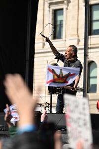 The Boss then asked the crowd to join “in choosing hope over fear, democracy over authoritarianism, the rule of law over lawlessness, ethics over unbridled corruption, resistance over complacency, unity over and peace over ... ” before exploding into a thunderous version of “War," a song he has sung since war clouds loomed over the Reagan administration.
