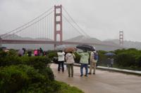 It was the first of several days of stormy weather forecast for California. A coastal flood advisory was in effect for San Francisco until Tuesday afternoon, with cooler showers and a chance of hail on Tuesday, while nearby mountains were expecting snow, the National Weather Service in Monterey reported.