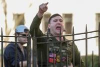 Lang's sparsely attended protest Saturday drew a far larger group of counterdemonstrators. Amid the faceoff, Balat tossed a jar-sized device that contained the explosive TATP into the crowd, the complaint said. It also contained a fuse, plus an exterior layer of duct-taped nuts and bolts, the complaint said.