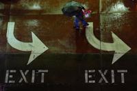 A man walks in the rain as a thunderstorm moves through the area Thursday, April 23, 2026, in Kansas City, Mo.