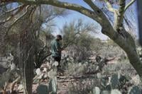 FBI agents carrying water bottles to beat the 80-degree F (26.7-degree C) heat walked among rocks and desert vegetation at Guthrie's Tucson-area home. They also fanned out across a neighborhood about a mile (1.6 kilometers) away, knocking on doors and searching through cactuses, bushes and boulders.