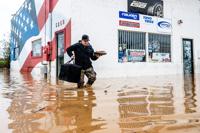 Dekoda Cruz waded in knee-deep muddy water to check on a friend's flooded tire business, where the office was littered with a jumble of furniture and bobbing tires.