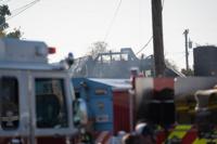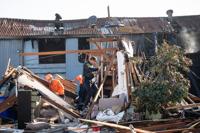 Within moments, an explosion and flames blew out the walls and the roof of the home. People nearby appeared to be dazed for a few seconds, before running toward the home to search for any victims. Several workers lifted a large piece of debris from where it landed near the excavator.