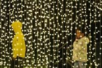 There are towering peonies and fields of lights on the mile-long ( 1.6-kilometer) illuminated trail at the city's Botanical Garden. Artists created whimsical water lilies and giant dragonflies, and transformed a Canary Island strawberry tree into a neon tree.
