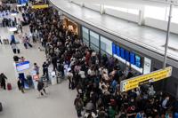 The scene appeared more chaotic at John F. Kennedy International Airport in New York. Large crowds of anxious travelers piled toward security checkpoints, and TSA staff shouted through megaphones to tell people not to push one another.