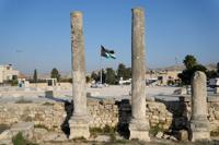 A Palestinian flag flies over the Roman historical site in the West Bank town of Sebastia Thursday, Nov. 20, 2025.